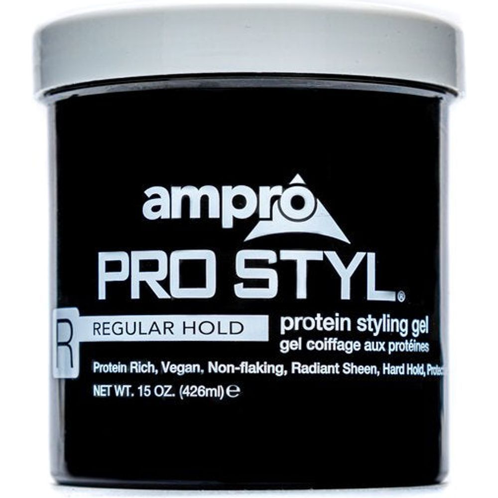 Ampro Pro Styl® Regular Hold Protein Unisex Styling Gel - because you want a styling gel that gives you the perfect look the first time, every time! Our legendary vegan, alcohol-free styling gel is uniquely formulated to provide the hard, firm hold you need to achieve the styles you desire. This gel is designed for sculpting and molding hair styles and for protective hair styles with resistant hair textures. Protein rich haircare formula bonds with hair’s natural amino acids which may help strengthen hair, encourage growth, and assist with reducing breakage. Special emollients help protect hair during the rigors of thermal styling