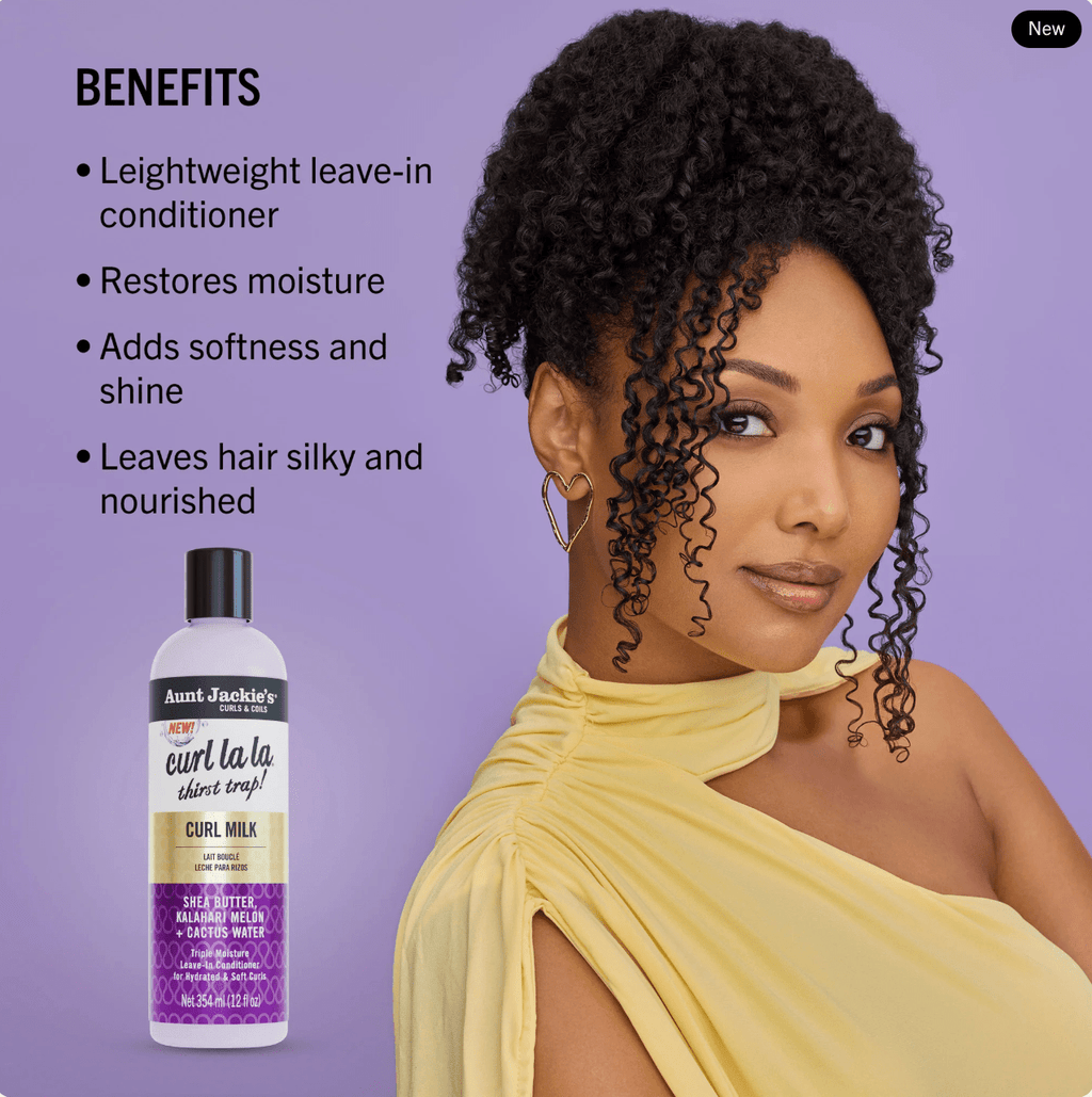The Curl La La Thirst Trap Curl Milk softens, detangles, and defines curls while restoring moisture and adding shine. This hydrating leave-in conditioner works as a daily moisturizer or styling primer, helping curls stay healthy, bouncy, and touchably soft. Infused with Shea Butter, Kalahari Melon, and Cactus Water, it nourishes and hydrates for flawless, well-defined curls. โจ
