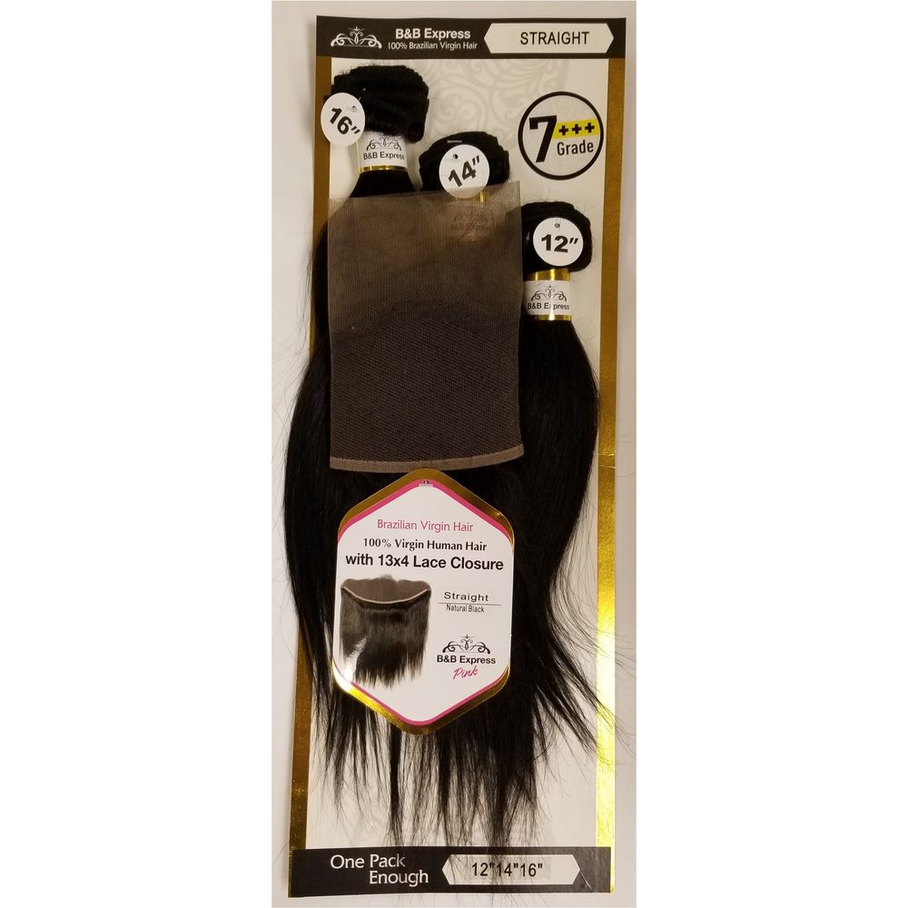 B & B Express 100% Human Hair Multipack Bundles + 13x4 Closure - Straight