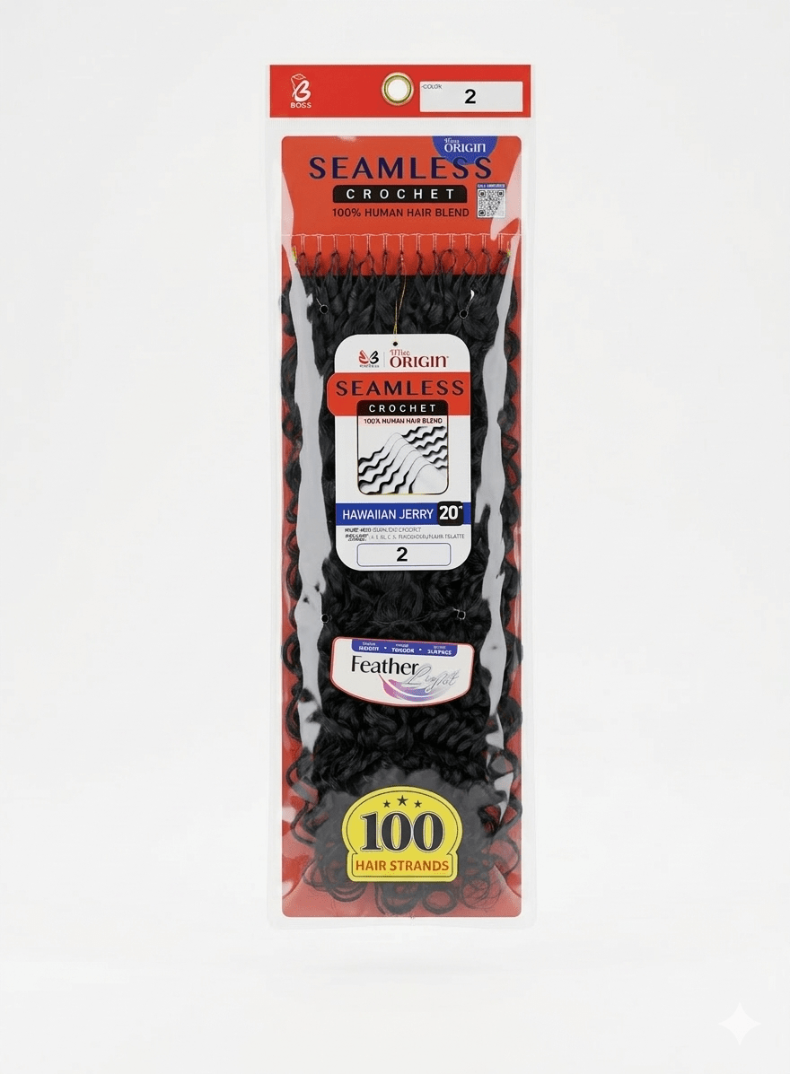 The Seamless Feather Light Crochet – Hawaiian Jerry 20″ features a beautiful Hawaiian Jerry curl pattern that delivers soft, voluminous texture with natural movement. Crafted from a 100% human hair blend, this crochet style includes 100 strands per pack for full coverage and easy installation. Its seamless feather-light construction ensures comfortable wear, while the 20-inch length creates bold, bouncy curls for a naturally glamorous look.