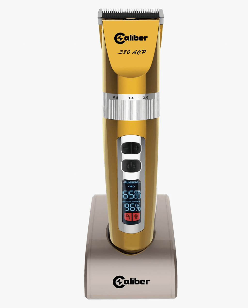 The Caliber .380 Gold Clipper is built for barbers and stylists who demand versatility and performance. Featuring a detachable and adjustable fade blade, this powerhouse delivers high-speed cutting with quiet operation and precision control. Its gold finish adds a premium touch, while the ergonomic design ensures long-term comfort during fades, tapers, or bulk cuts.