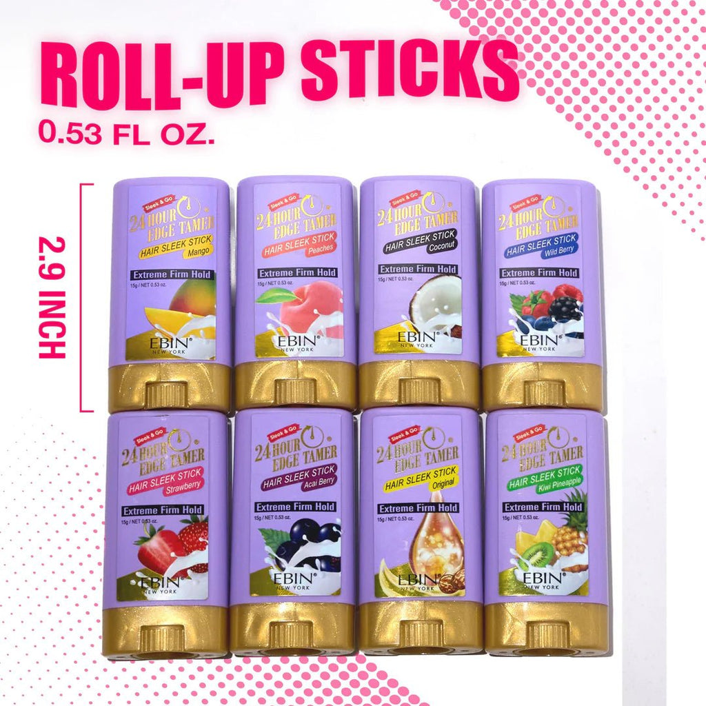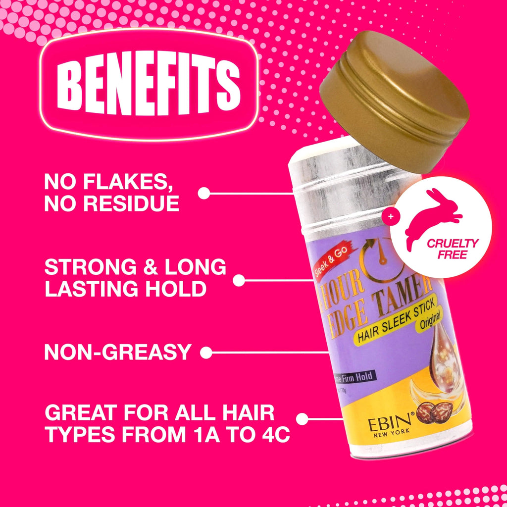 The Ebin 24 Hour Edge Tamer Wax Stick provides long-lasting control and a polished finish for all hair types. Perfect for edges, flyaways, and baby hairs, this convenient stick helps maintain a smooth, styled look throughout the day. Available in multiple scents, it leaves hair looking sleek without stiffness or residue. ✨💖