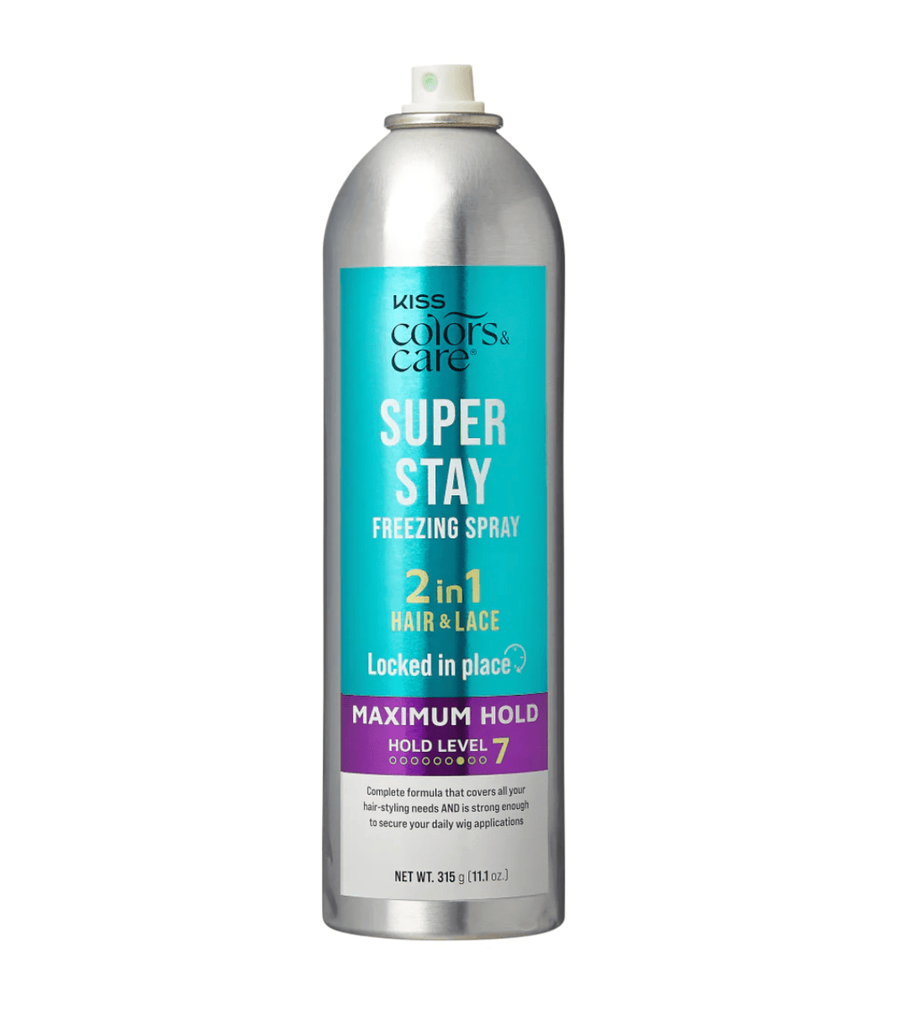 The Kiss Colors & Care Super Stay Freezing Spray is a 2-in-1 maximum hold styling spray that delivers powerful, long-lasting control for wig applications and natural styles. Whether you're laying edges, securing lace, or locking in sleek styles, this fast-drying, humidity-resistant formula has your back from morning to night.