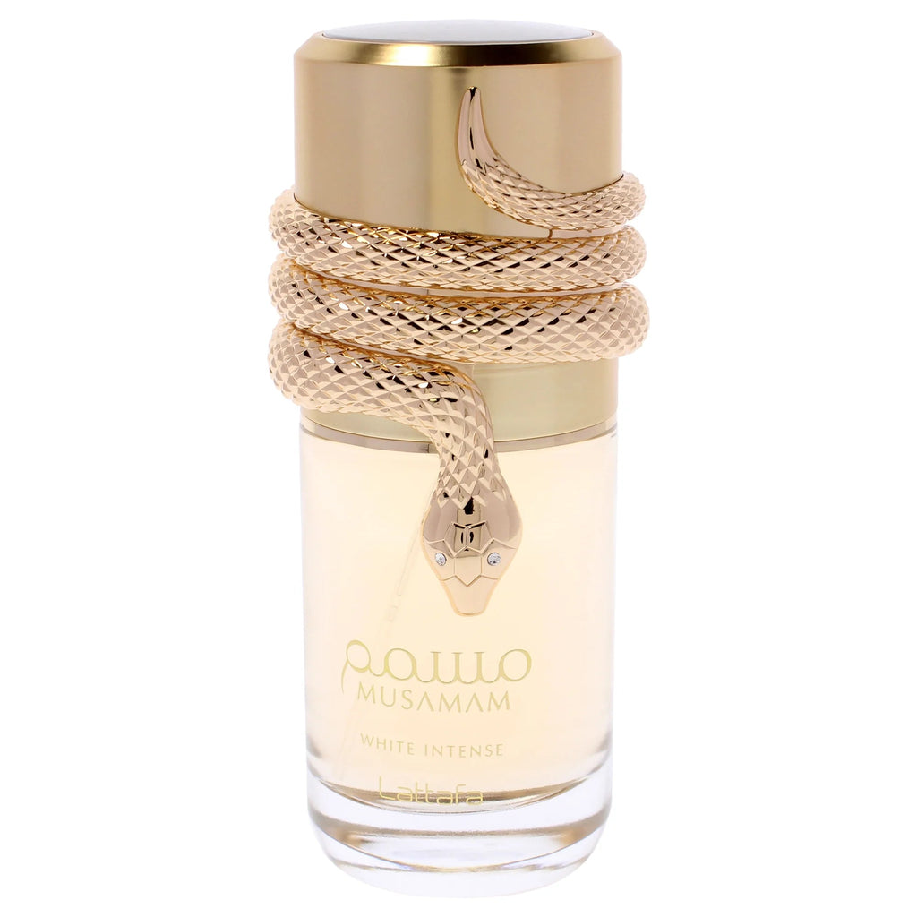 Lattafa Musamam White Intense Eau de Parfum is a refined and captivating fragrance crafted for those who appreciate a bold yet elegant scent. This unisex perfume blends warm, creamy notes with a fresh opening, making it ideal for both day and evening wear. The 3.4 oz bottle offers a generous amount of long-lasting scent in a sleek design perfect for display or travel.