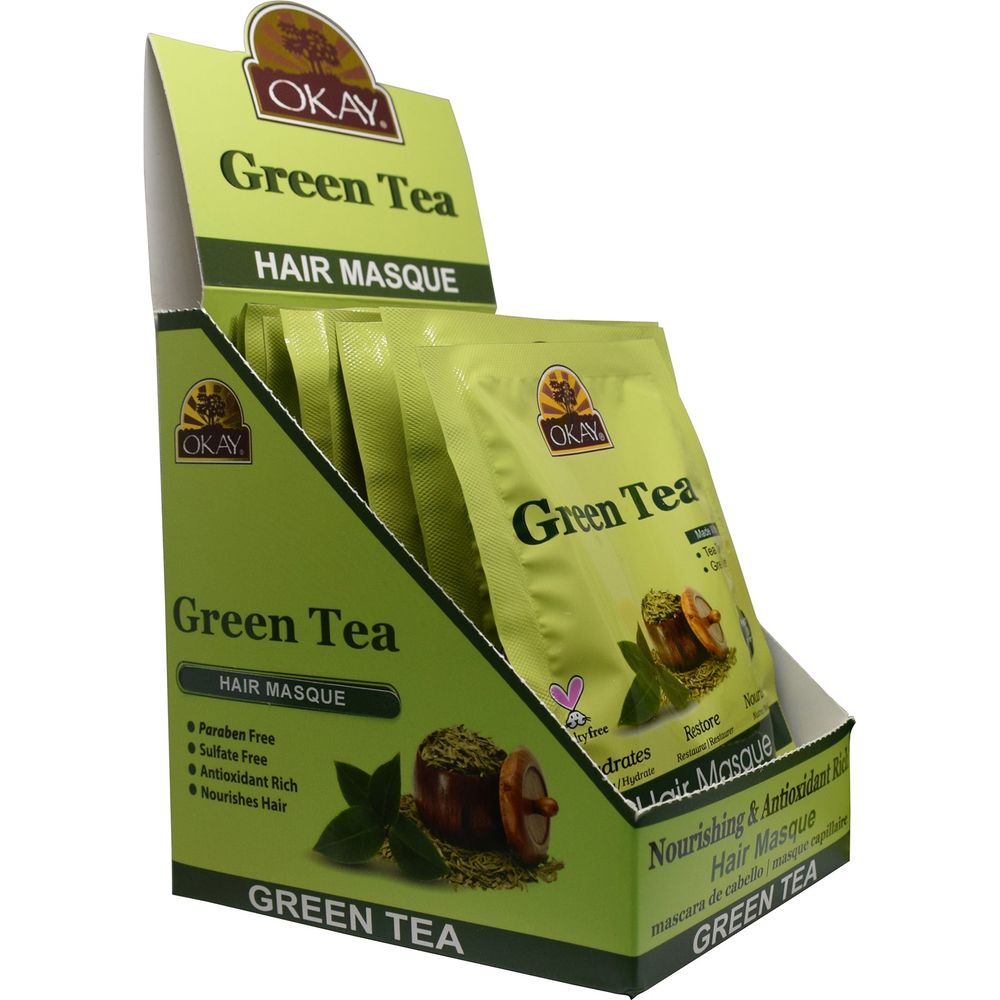 OKAY® Nourishing Antioxidant Rich Green Tea Masque is a rich invigorating treatment that revitalizes your senses. Restore natural shine, heal, and protect hair.