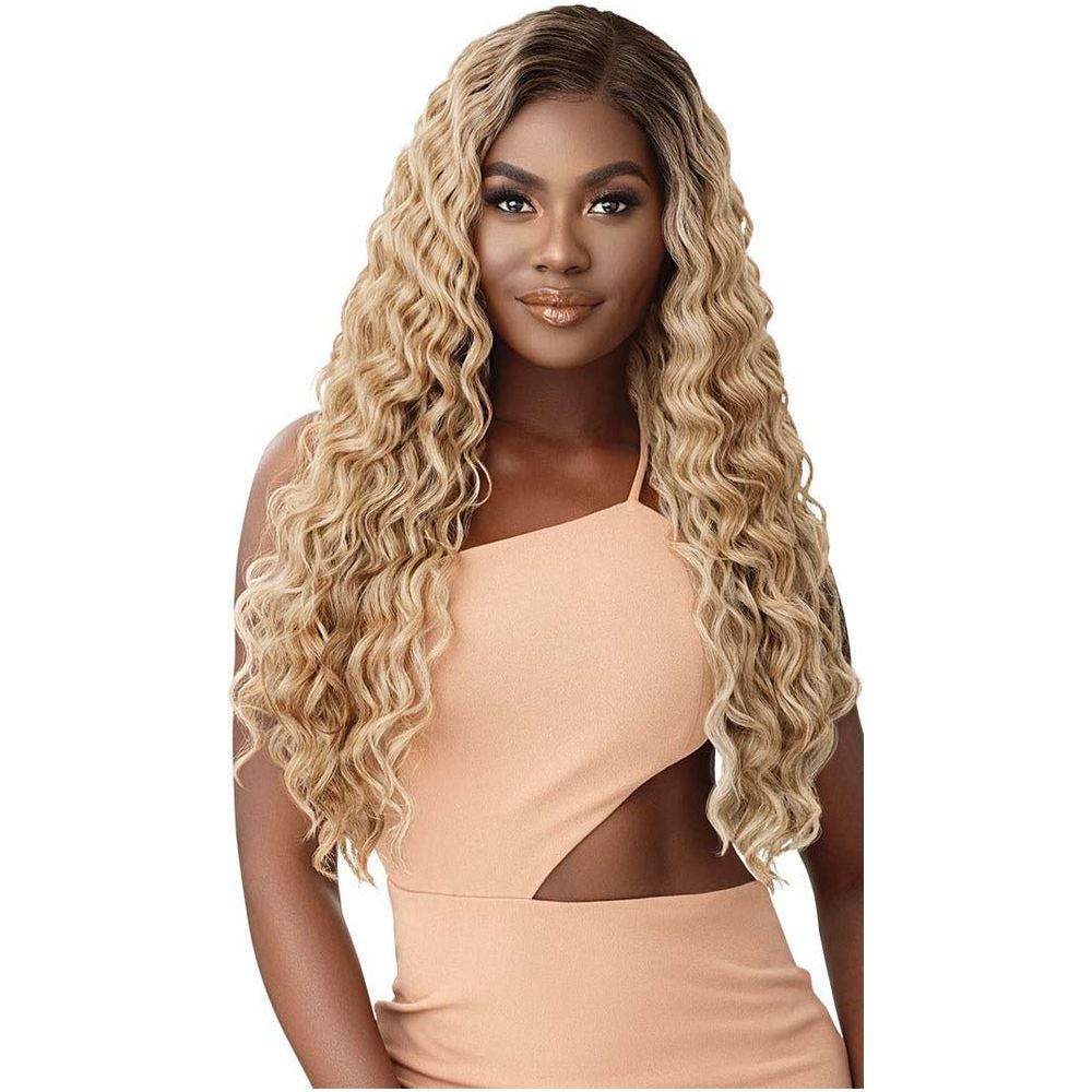 Outre SleekLay Part Synthetic HD Lace Front Wig - Asmara is a synthetic deep curl lace front wig that is 26" long. It has a deep side parting and flat lace finish.