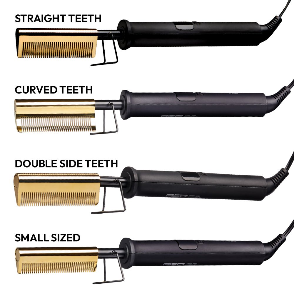 The Red by Kiss Hot Styler Pressing Comb is designed to help achieve smooth, straight roots and sleek hair finishes with salon-quality precision. Whether you prefer curved teeth for broader sections or small-sized teeth for detailed work, each variant offers even heat distribution and maximum control for all hair types.