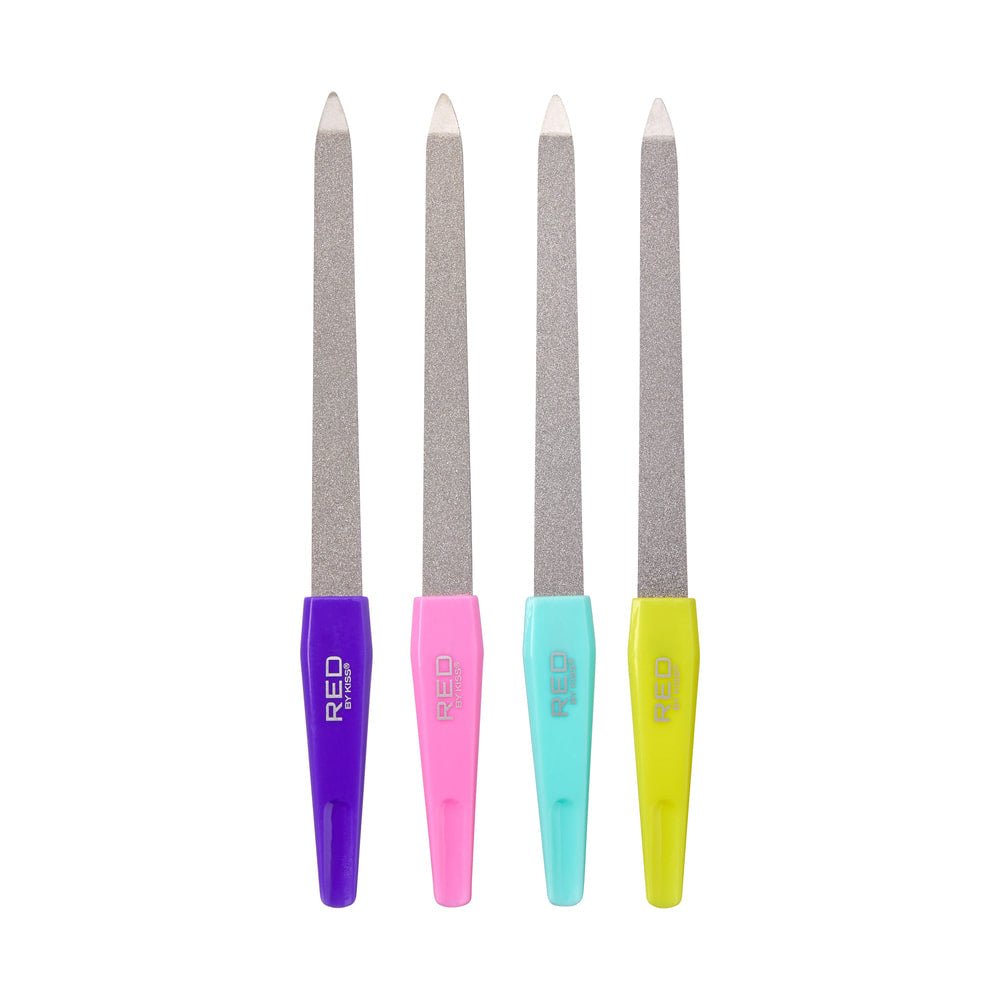 Shape and smooth your nails effortlessly with the Red by Kiss Sapphire Nail File. Crafted with durable metal and a sapphire-coated surface, this file offers long-lasting performance and gentle, precise filing for natural or artificial nails. Perfect for professional use or everyday nail care.