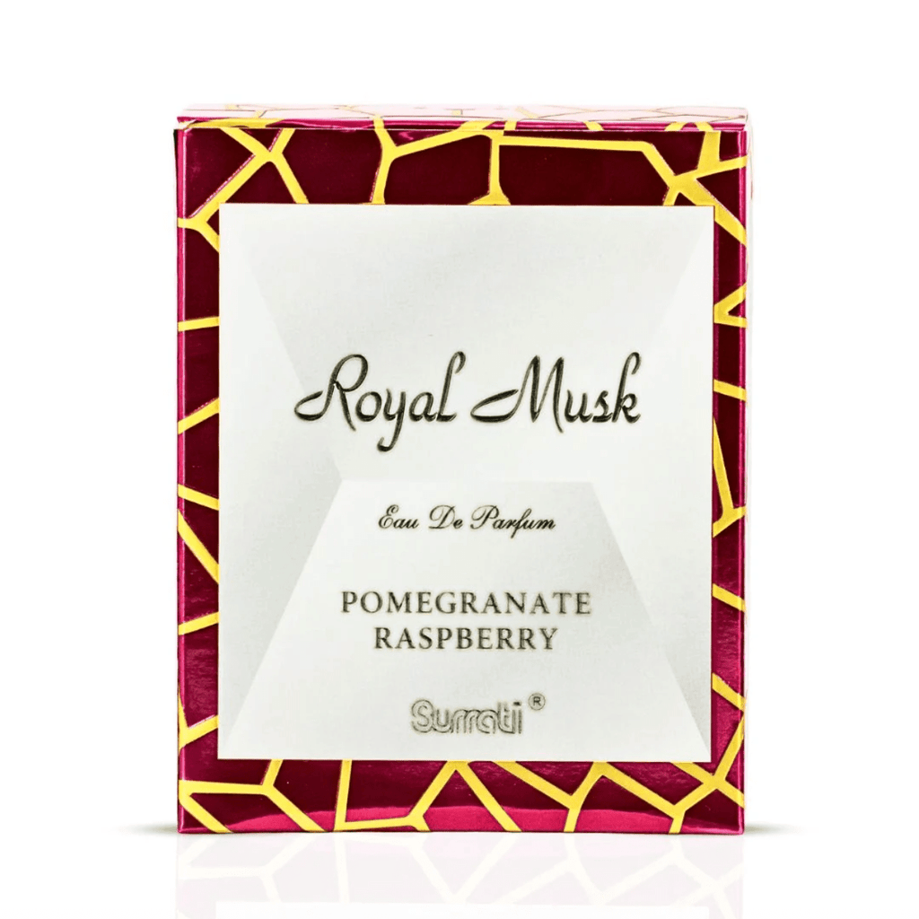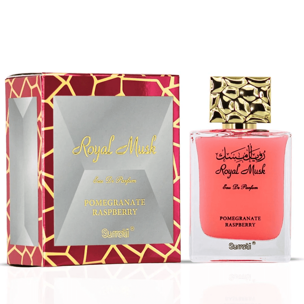 Royal Musk Pomegranate Raspberry Eau De Parfum by Surrati offers an enticing fusion of fruity and musky notes, creating a bold yet refreshing fragrance for both men and women. The sweet, tangy burst of pomegranate and raspberry is balanced beautifully with a soft musky undertone, making this scent perfect for those who enjoy vibrant, luxurious perfumes.