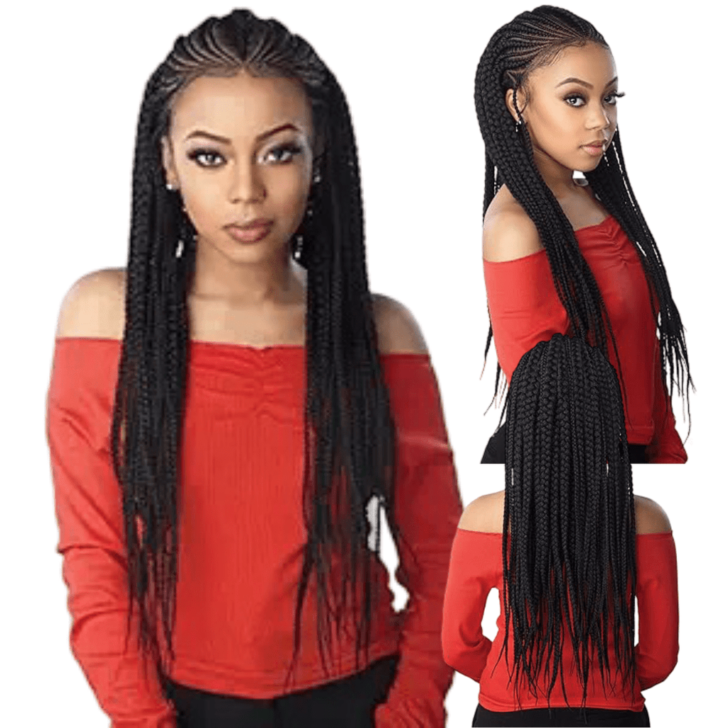 Sensationnel Cloud 9 13x7 Synthetic Lace Front Wig - Feed In Fulani Cornrow is a braid style with thin and thick braid patterns using the feed-in method.
