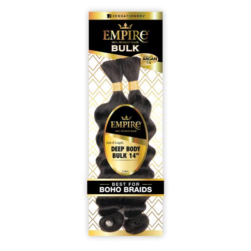 Bring softness and definition to your braids with the Sensationnel Empire Deep Body Bulk – 100% Human Hair 💁🏽♀️. This 14” deep wave bundle is made specifically for braiding and crochet styles, offering a natural look with lasting volume and bounce.