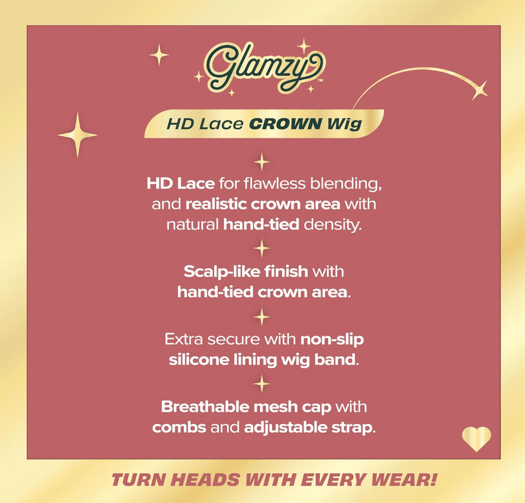 The Glamzy Lace Crown Wig in the “Rosy” style is part of Sensationnel’s exclusive hand-tied Glueless Lace Crown collection. Made with premium synthetic fibers, this wig features a natural-looking CrownArea lace part that blends seamlessly into your scalp for a flawless finish. No glue or adhesives required – just wear and slay!