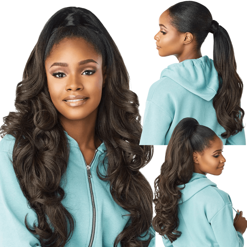 Sensationnel Instant Up & Down Synthetic Ponytail & Half Wig - UD 6 has Big waves and Yaki texture that give a Blowout look.