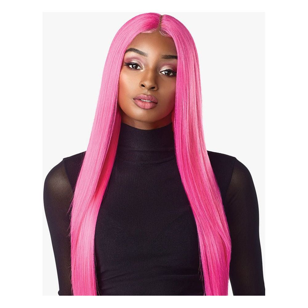 The “LACHAN” style from the Sensationnel Shear Muse collection is a long, straight wig that falls to the waist and is offered in bold neon and fashion colors. It features ear-to-ear lace front with baby hairs, and is constructed with heat-resistant premium synthetic fiber safe up to approximately 350–400 °F.