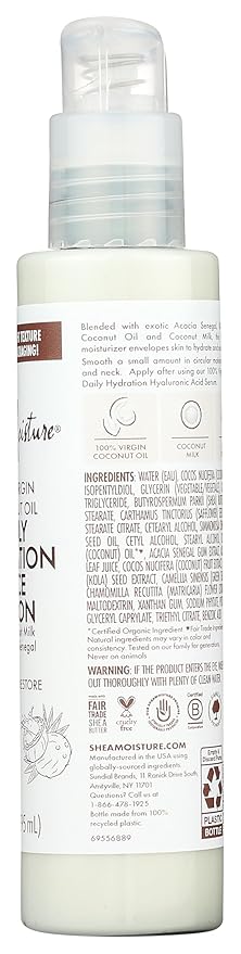 SheaMoisture's Virgin Coconut Oil Daily Hydration Face Lotion is a lightweight, non-greasy moisturizer that envelops skin in hydration using the best parts of the coconut and exotic Acacia Senegal. This luxurious blend of 100% Virgin Coconut Oil and Coconut Milk hydrates and nourishes the skin, leaving it feeling supple and refreshed. Ideal for daily use, it absorbs quickly without a greasy feel, making it perfect for all skin types.