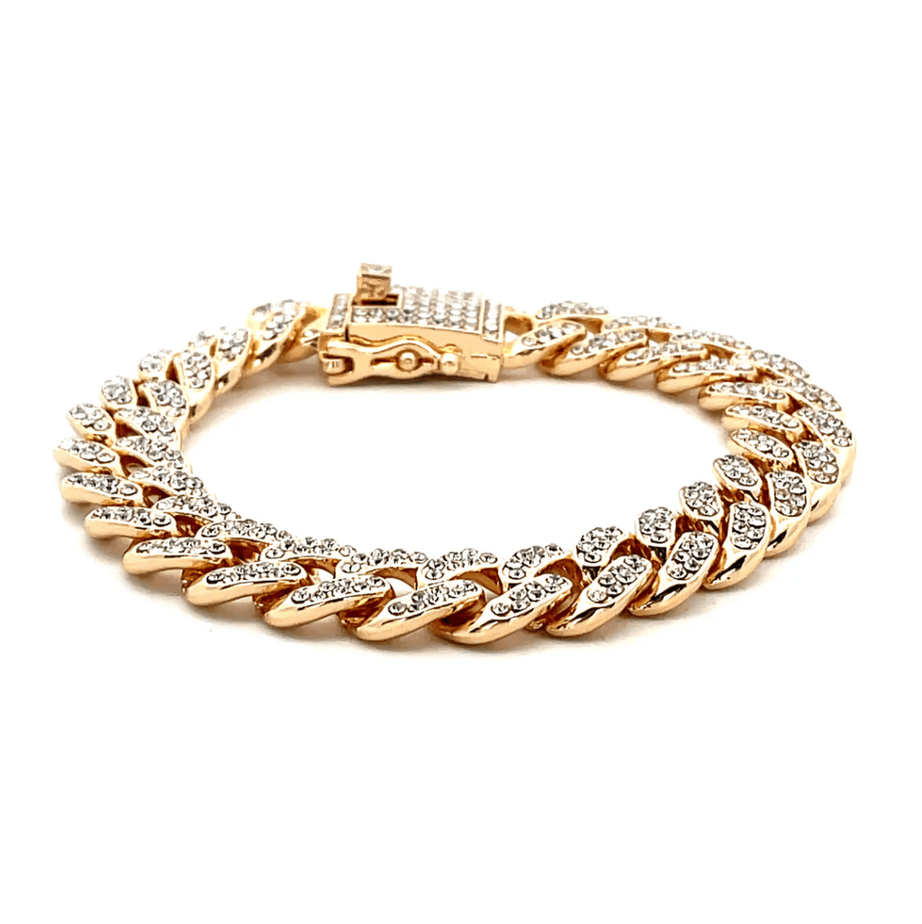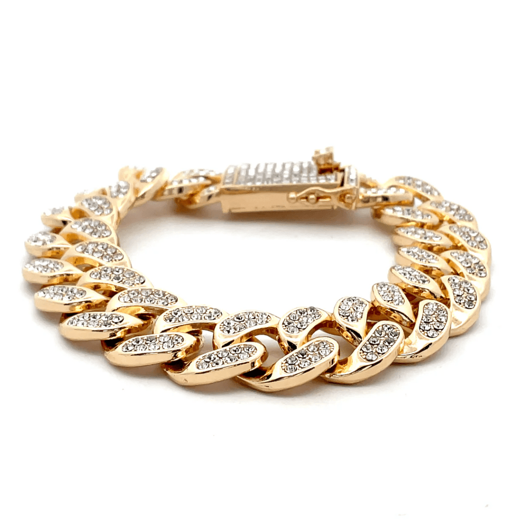 The Iced Out Diamond Bracelet in gold is the ultimate statement piece for anyone who lives in luxury. Featuring a radiant gold-tone finish and embedded rhinestone crystals, this bracelet brings the drip without breaking the bank 💎💛