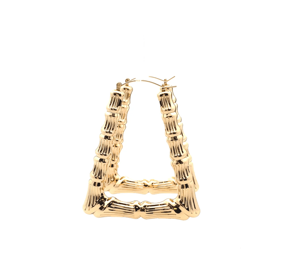 Turn heads with the Bamboo Rectangle Earrings by The One Jewelry — a unique twist on the classic hoop. These earrings feature a bold rectangular shape with a bamboo-inspired texture, giving you an eye-catching statement while keeping things lightweight and wearable.